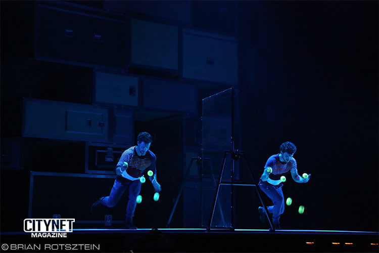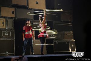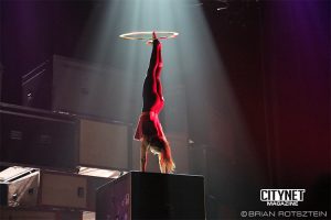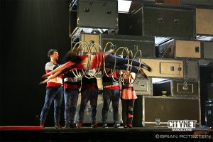 Flip Fabrique, a world renowned circus troupe from Quebec City brought their contagious energy and spunk and left the audience dazzled. As they say in French, this troupe is “polyvalente”: hoops, pins, diabolos, trampolines and and of course, acrobatic flips – these guys can do it all, and do it well.
