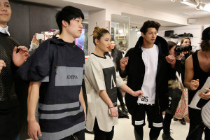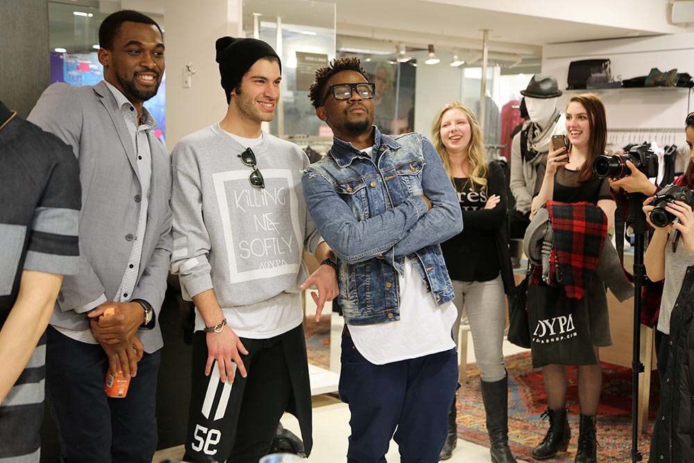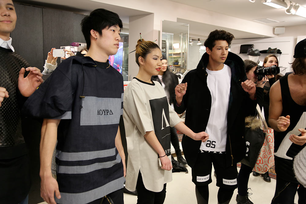 They held an event at Arithmetic, a retail clothing store in Les Cours Mont-Royal. Models were dressed in the KMS clothes and were allowed to move around the store while music played. As soon as the music stopped, the models had to freeze for a couple of minutes until the music started playing again. If they moved, they were eliminated from the game. This continued until there were just two models left (one male, one female).